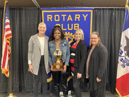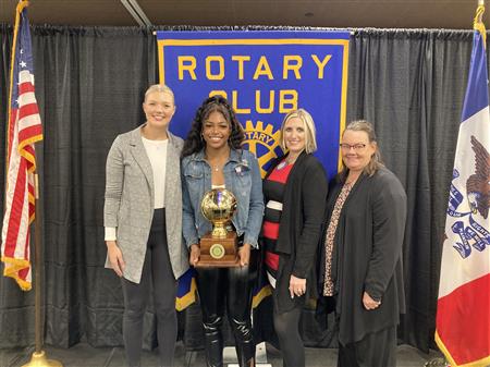 Since 1936 the Waterloo Rotary Club has enjoyed the honor each year to celebrate outstanding performance by high school athletes in the city of Waterloo and surrounding areas. Area volleyball coaches choose their MVP's and then, by ballot of all the coaches, award the trophy for overall Most Valuable volleyball player. The winners are entitled to display the trophy at her school for the next twelve months.