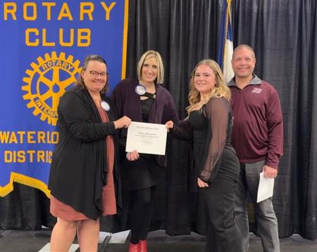 Since 1946 the Waterloo Rotary Club has enjoyed the honor each year to celebrate outstanding performance by high school athletes in the city of Waterloo. Football coaching staffs at each school in the city nominate a senior MVP from their team. In a secret ballot, area sportswriters make the citywide selection. The winner receives the Glen "Doc" Miller traveling trophy as top player in his sport.